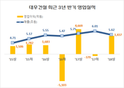 [산업경제뉴스 문성희 기자] 대우건설이 주택분양 호조세에 힘입어 올해 상반기 3437억원의 영업이익을 내고 기분좋게 웃었다. 대우건설이 1일 발표한 '상반기 연결기준 경영실적 잠정집계'에 따르면 대우건설은 올 상반기 매출은 5조6167억원, 영업이익 3437억원 그리고 당기순이익은 1981억원을 기록했다. 매출은 2017년 하반기 보다 6.5% 감소하며 그동안의 꾸준한 상승세가 꺾였지만 영업이익은 지난해 하반기 379억원 적자에서 흑자로 전환됐다. 이익 규모도 최근 3년 동안의 반기 실적 중 2017년 상반기 4669억원에 이어 두 번째로 높은 실적을 거뒀다. 대우건설이 올 상반기 좋은 실적을 보인 이유는 무엇보다 주택분양이 큰 몫을 차지한 것으로 분석된다. 대우건설의 상반기 매출 5.6 조원 중 주택부문은 3.4 조원으로 전체 매출의 61%를 차지하며 1 등 공신의 역할을 했다. 플랜트사업은 1.1조원으로 20%를 차지했고, 토목사업부문은 15%, 베트남 하오이 개발사업은 2168억원으로 4%를 차지했다. 영업이익에서도 주택과 해외사업이 큰 역할을 한 것으로 알려졌다. 대우건설 관계자는 “주택건축사업과 베트남 개발사업 등 수익성이 좋은 사업부문 매출비중을