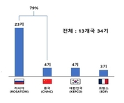 [산업경제뉴스 문성희 기자] 현재 세계 원전 시장은 러시아와 중국이 장악하고 있는 것으로 알려진 가운데, 전국경제인연합회(이하 전경련)가 한국은 미국과 함께 손을 잡고 러시와와 중국의 장벽을 돌파해야한다고 주장했다. 전경련은 3일, 보도자료를 배포하면서, 박상길 박사에 의뢰한 '한미 원자력 민간 협력방안 보고서'를 기반으로 원전 수출 시장은 단순 비즈니스를 넘어 진영 간 패권 경쟁 양상으로 나아가고 있는 만큼 동맹국인 미국과 선진 원전 수출, 원전 연료 공급망 구축 분야에서 협력을 강화해야 한다고 주장했다. ■ 러시아, 세계 원전 수출 시장의 68% 점유...글로벌 영향력 공고화 보고서에 따르면 최근 세계 원전 수출 시장에서 가장 두각을 보이는 국가는 단연 러시아다. 2022년 기준 13개국에서 건설 중인 수출 원전 34기 중 러시아가 건설하는 비중은 23기로 전체의 약 68%를 차지한다. 중국은 4기, 한국 4기, 프랑스 3기 등이다. 세계 건설 중인 수출 원전 현황 (2022년) ■ 중국, 세계적인 ‘탈원전 흐름' 틈타 신흥강자로 부상 중국은 러시아에 비해서 원전 수출에 있어서는 후발주자지만, 거대한 국내시장을 바탕으로 규모의 경제, '일대일로'로 대표되