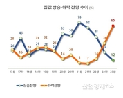 [산업경제뉴스 문성희 기자] 집값이 걷잡을 수 없이 떨어지자 정부가 부랴부랴 규제완화 카드를 꺼내들었지만 시장에서는 여전히 집값은 계속 떨어질 것이라는 불안감이 팽배한 것으로 조사됐다. 금리인상에 대한 불안이 갈수록 커지기 때문이다. 지난 7월 기준금리 빅스텝 이후, 집값이 너무 빠른 속도로 하락하면서, 이미 깡통전세·영끌 패닉셀링·미분양누적·PF대출부실 등 각종 문제가 나타나고 있다. 결국 집값이 더 떨어져야한다던 정부도 상황이 이렇게 전개되자 주택대출 완화, 규제지역 해제 등 부동산규제 완화 정책을 발표했다. 하지만 시장에서는 2주가 지난 지난주까지 별다른 효과가 나타나지 않고 집값하락세는 여전히 이어지고 있다. 부동산R114에 따르면 지난주 서울의 아파트가격 변동률은 -0.07%로 한 주전 -0.08%에서 0.01%P 상승하는데 그쳤다. 정부가 10월 말 대출규제완화 방침을 발표했고, 11월 초에는 규제지역을 거의 대부분 해제했지만, 사실상 시장에서 별다른 반응이 나오지 않고 있다는 평가다. 부동산R114는 "현재까지 유의미한 거래량 증가 등의 가격 변화 조짐은 미미한 것으로 확인된다"면서, 주택시장의 말을 빌어 "정책 효과가 나타나기까지 2~3주 정도