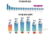[산업경제뉴스 문성희 기지] 한국은 노동자 1인당 로봇 설치 대수에서 세계 1위를 차지했지만, 로봇산업의 경쟁력은 주요 경쟁국보다 크게 낮은 것으로 조사됐다. 전국경제인연합회(이하 전경련)가 글로벌 로봇산업 현황과 한국의 현재 위치를 분석한 자료에 따르면 한국은 전 세계에서 가장 높은 로봇 수요에도 불구, 로봇산업의 글로벌 경쟁력은 주요국 가운데 가장 낮은 수준이었으며 특히 중국에도 뒤처지고 있는 것으로 나타났다. 글로벌 로봇산업은 제조업 현장에서 자동화 작업을 수행하는 산업용(제조) 로봇시장과 의료(수술로봇), 가정(청소로봇), 군사(정찰로봇) 등 서비스용 로봇시장으로 구성되며 시장규모는 243억 달러(2020년 기준)에 달했다. 이중 한국의 로봇시장은 30억 달러 규모로 세계시장의 12.3%에 불과했으며, 글로벌 시장이 연간 9% 성장할 때 한국은 2%대 성장에 그쳐 산업이 침체되어 있는 것으로 분석됐다. 한국은 노동자 1만명 당 설치된 로봇 대수를 의미하는 로봇밀도가 전 세계 1위로, 세계적으로 가장 높은 로봇 수요를 가진 것으로 나타났다. 로봇밀도 세계 평균이 126대인 가운데 한국의 로봇밀도는 932대로, 일본 390대, 독일 371대, 미국 255