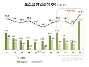 [산업경제뉴스 문성희 기자] 2018년 7월 최정우 회장 취임후 실적하락에 시달렸던 포스코가 지난해 폭등에 가까운 경영성과를 냈다. 최 회장은 지난해 임기 연장 때 실적하락 때문에 애를 먹었지만, 이제 안도의 숨을 내쉴 수 있게 됐다는 업계의 평가다. 최 회장은 이런 실적호조를 기반으로, 최근 수소, 전지, 해외 등 미래먹거리 발굴을 선언하고 벌써 분주한 발걸음을 보이고 있다. ■ 매출 76조 4천ㆍ영업이익 9조 2천억원 284%↑..."창사 이래 최고 실적" 지난 12일 포스코는 2021년 잠정 경영실적을 발표하면서, 연결기준 매출 76조 4천억원, 영업이익 9조 2천억원을 실현했다고 밝혔다. 별도기준으로는 매출 39조 9천억원, 영업이익 6조 6천억원이다. 연결 매출은 전년 대비 32.1% 증가했고, 영업이익은 283.8% 증가하면서 3배에 육박하는 성장세를 보였다. 포스코는 '창사 이래 최대 실적'이라고 목소리를 높였다. 한편, 발표된 연간실적을 기준으로 4분기 실적을 추산해 보면, 포스코의 4분기 매출은 21조 4천억원, 영업이익은 2조 3천억원 수준이다. 전년 동기와 비교하면 매출은 40.2% 증가했고, 영업이익도 166.4% 증가하면서 4분기에 큰