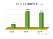 [산업경제뉴스 문성희 기자] 2014년 이후 8년 동안 아파트 값이 천정부지로 치솟으면서, 높아진 아파트 값을 감당해내기 어려운 수요자들이 최근 오피스텔과 연립주택 등 탈(脫) 아파트 경향을 보이고 있다. 특히 오피스텔에 대한 수요자들의 관심이 커지고 있는데, 오피스텔 분양에 몰린 청약 경쟁률을 예로 살펴보면 2년 전인 2019년과 2020년·2021년이 완전히 다른 양상을 보이고 있다. 부동산 전문 리서치 업체 리얼투데이가 올해 전국에서 분양한 오피스텔의 청약 경쟁률을 조사한 결과, 2만1594실 모집에 26만3969명이 접수하며 12.2대 1의 경쟁률을 기록한 것으로 나타났다. 이는 2019년 3.1대 1(1만2697실 모집, 3만9481건 접수)보다 4배나 높은 경쟁률이다. 오피스텔 쳥약경쟁률은 지난해에도 평균 13.2대 1(2만7,761실 모집, 36만6,743명 접수)을 기록했다. 작년과 올해에 오피스텔로 수요자들이 몰리고 있는 현상으로 해석된다. 더욱이 최근 정부가 오피스텔 바닥 난방 규제 완화를 발표하면서, 시장에서는 오피스텔에 대한 선호도가 더욱 높아질 것으로 예상하면서 올 연말 쯤에는 지난해 기록을 뛰어넘을 것이라는 목소리에 무게가 실린다.