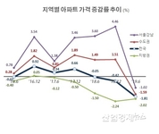 [산업경제뉴스 문성희 기자] 최근 아파트가격이 하락세로 접어들면서 그동안 많이 오른 강남권 아파트가 더 많이 내릴 것이라는 전망이 있었지만, 강남아파트는 하락세에도 전국 평균의 절반 수준밖에 내리지 않은 것으로 나타났다. 오를때 더오르고 내릴때는 덜내리는 모습이다. 한국감정원의 공동주택 실거래가격지수에 따르면, 전국 아파트 가격은 지난해 상반기부터 올해 상반기 6월 첫째주(6월 3일)까지 계속 하락세를 보이고 있다. 특히 하락폭도 지난해 상반기에는 0.05%로 미미하게 하락했지만, 지난해 하반기에는 0.42%로 하락폭을 키웠고, 올해 상반기에는 1.81%로 하락 속도가 빨라졌다. 하지만 서울 강남아파트는 지난해 상반기에도 3.60% 상승했고, 지난해 하반기에는 4.46%로 오히려 상승폭이 커졌다. 올해 들어와서는 강남아파트도 가격이 꺾여 1.02% 하락했다. 하지만 전국 평균 하락률 1.81%에 비하면 절반 수준밖에 안된다. 지방권 아파트는 2017년 상반기부터 하락세로 접어들어 2년 넘게 하락세가 지속 되고 있다. ■ 지난 3년 동안 전국 5.7% 감소하는 동안 강남 39.9% 증가 강남아파트의 가격은 오를때 더오르고 내릴때 덜내리는 추이를 보이면서 지난