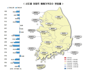 [산업경제뉴스 문성희 기자] 집값 하락이 1년 넘게 이어지고 있다. 정부는 치솟던 집값이 진정되고 있어 서민들의 주거비 부담이 줄었다고 설명하지만 하락폭의 지역간 차이가 너무 커서 지방에서는 오히려 부양대책이 필요하다는 목소리가 나온다. 서울, 수도권을 제외한 지방에서는 주택 산업의 침체로 경제의 활력이 떨어지면서 자금 순환이 더뎌지고 일자리도 줄어들고 있다는 하소연이다. 깡통전세에 대한 우려가 높아지고 주택담보대출 상환 압박이 커져 공급자도 수분양자도, 그리고 중도금을 대출한 은행마저, 모두 불안감을 감추지 못하고 있다. 한국감정원의 아파트 매매가격 통계에 따르면, 정부의 잇따른 부동산 대책으로 지난해부터 집값이 하락세를 보이고 있다. 한국감정원은 "지난 9.13대책 발표된 이후, 집값 급등의 진원지였던 서울 강남 집값이 잡히고 있다"면서, "정부의 강력한 투기수요 차단 정책이 효과를 보이면서 단기간에 급등했던 지역을 중심으로 지난해 하반기부터 안정을 찾고 있다"고 설명했다. 하지만 지방 부동산 시장에서는 진정세가 아니라 시장이 얼어붙어 위기가 감지되고 있다는 지적이 나오고 있다. 그동안 폭등했던 서울, 수도권이 진정되는 것은 바람직하지만, 그동안 상대적으