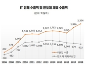 [산업경제뉴스 문성희 기자] 2000년 이후 IT강국으로 자타가 공인했던 한국의 IT산업이 부진의 늪에서 빠져나오지 못하고 있다. 특히 그동안 반도체 호황에 가려져 보이지 않았던 핸드폰, 컴퓨터, 디스플레이 등 IT품목의 부진이 최근 반도체 실적 마저 급감하면서 고스란히 드러나고 있다. 업계 일각에서는 "반도체의 착시현상이 걷히면서 한국 IT산업의 민낯이 드러나고 있다"라는 평가가 나오고 있다. IT산업이 우리 수출에서 차지하는 비중은 1996년 32%, 2005년 37%, 2018년 36%으로 3분의 1 수준을 유지하고 있다. 수출액도 1996년 412억 달러에서 2018년 2204억 달러로 매년 7.9%의 성장률을 보였다. 특히 최근 2년동안에는 연평균 16.5%의 성장세를 보이며 우리 수출의 버팀목으로 성장했다. 하지만 이러한 성장세의 이면을 자세히 들여다 보면 오직 반도체 한 품목만의 성장이었던 것을 발견할 수 있다. 실제로 한국경제연구원(이하 한경연)이 지난 20년 IT산업 수출액을 품목별로 조사해본 결과 반도체를 제외하면 핸드폰, 컴퓨터, 디스플레이 등 한 때 한국 IT산업을 이끌던 품목들이 2010년 이전 수준으로 돌아 간 것으로 조사됐다. 반도
