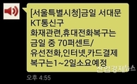 [산업경제뉴스 문성희 기자] 영등포구청 인근에서 근무하는 직장인 A씨는 24일 오후 2시 식사 후 카드 결제를 하려고 식당주인에게 신용카드를 건냈다. 식당주인은 결제기에 A씨의 카드를 밀어 넣었다. 하지만 몇번이나 시도해도 승인이 떨어지지 않았고 결국 A씨는 현금으로 식사대금을 지불했다. 함께 식사를 한 동료들에게 왠지 머쓱해졌는데 동료 한 명이 문득 생각이 난 듯이 휴대전화 문자를 확인했다. 오후 12시 05분 소방재난본부청에서 발송한 긴급재난문자 였다. '서대문구 충청로3가 kt건물지하 화재발생, 인근 주민은 통신장애가 발생하고 있습니다.'라는 문자였다. A씨도 이 문자를 확인했었지만 직장이 영등포에 있어서 무심히 지나쳤었다. 이날 오후 2시 29분 소방재난본부청은 다시 재난문자를 발송했다. 이때는 통신장애 지역이 중구, 서대문구, 마포구 일대로 명기돼있었다. 그리고 이날 오후 4시 55분에는 서울시청이 또 다시 재난문자를 발송했다. 이번에는 아예 피해지역이 명시돼있지 않고, 단지 휴대전화는 70% 복구됐고, 유선전화와 인터넷, 카드결제 복구는 1~2일 소요예정이라고 명시돼있다. A씨는 "당초 서대문에만 통신장애가 있다고 하더니, 3시간이 지나서 피해지역