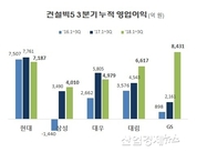 [산업경제뉴스 문성희 기자] 현대건설, 삼성물산-건설, 대우건설, 대림산업, GS건설 등 건설빅5의 3분기 실적이 하나둘 모습을 드러내고 있다. 올해 영업이익 1위를 달리고 있는 GS건설은 24일 가장 먼저 2018년 3분기 잠정실적을 발표했고 나머지 회사들의 3분기 실적도 증권가에서 속속 추정치들이 나오고 있다. 지난주 에프앤가이드가 추정한 건설빅5의 3분기 영업이익을 살펴보면 현대건설이 2793억원, 대우건설이 1542억원, 대림산업이 1885억원이었으며, GS건설이 24일 발표한 영업이익은 2340억원이다. 삼성물산은 회사내에 건설뿐만 아니라 상사, 패션, 리조트 부분이 혼재돼 있어 건설부문만의 추정치가 나오지 않았다. ■ 현대건설 꾸준한 실적 유지, 삼성물산 적자에서 벗어나 GS건설이 발표한 3분기 잠정실적과 증권가에서 추정한 나머지 회사들의 3분기 실적을 기준으로, 건설빅5의 최근 3년 1~3분기 누적실적을 보면 회사마다 각기 다른 양상을 보인다. 자타공인 해외건설의 강자로 불리는 현대건설은 지난 3년 미미한 등락폭을 보이고 있지만 해외부분의 강자답게 국내 주택상황 등 주변환경에 크게 흔들리지 않으며 일정 수준을 유지하는 모습이다. 올해 3분기까지