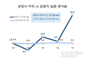[산업경제뉴스 문성희 기자] 최근 최저임금 인상으로 중소·자영업자들의 고통이 커지면서 문재인 정부가 추진하고 있는 '소득중심 성장'의 기조가 흔들리는 모습을 보이고 있다. 김동연 경제부총리겸 경제기획원장관은 21일 국회에서 최저임금 정책과 주 52시간 정책에 대해 속도조절을 해야한다고 말해 소득중심 성장 정책에 대한 수정 가능성을 암시했다. 하지만 우리 사회에서는 여전히 대기업 중심의 우리 경제구조에 대한 비판과 우려가 사라지지 않고 있다. 특히 이명박, 박근혜 정부 10년 사이 대기업과 근로자, 그리고 대기업과 중소기업 간의 격차가 심화되면서 저성장과 경제침체의 주요 원인으로 지목되고 경제구조의 틀을 조정해야한다는 목소리가 여전히 힘을 받고 있다. ■ 최근 5년, 상장사 영업이익증가율 69%, 근로자 명목임금 증가율 13% 이러한 목소리가 나오는 이유는, 과거 정부가 펼쳐 온 대기업 위주의 경제정책으로 국민의 대부분을 차지하는 근로자, 자영업자, 중소상공인의 삶이 갈수록 어려워지기 때문이다. 실제로 상장사들의 최근 5년 영업이익 증가율은 69%에 달하는 반면, 근로자의 임금 인상률은 같은 기간 13%에 그치고 있다. 최근 반도체 부문의 이익증가로 기업 이익
