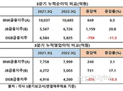 [산업경제뉴스 민경종 기자] 영·호남을 주된 영업기반으로 은행·증권·캐피탈 등의 종속회사를 거느린 지방은행금융지주 3사의 3분기까지 손익을 분석한 결과 JB금융지주가 가장 알차게 장사를 한 것으로 나타났다. 3분기까지 영업이익 증가율이 가장 높은 곳은 호남권의 JB금융지주가 ‘톱’을, 이어 부산·경남권의 BNK금융지주, 이어 대구·경북지역을 관할하는 DGB금융지주의 순으로 나타난 것. 여기에다 영업외손익까지 반영한 당기순이익 증가율 역시 영업이익 증가율과 동일한 순위를 기록했다. 다만 최하위 DGB금융지주는 3사 중 유일하게 전년 동기대비 손익이 뒷걸음질 치는 부진을 연출해 대조를 보였다. 3Q 누적 영업이익 증가율, JB 20.8%→BNK 6.5%→DGB –11.5% 순 각사 3분기보고서에 의거해 종속기업 실적을 포함한 연결기준 3분기까지 영업이익과 순이익 규모를 살펴보면 호남권을 관장하는 JB금융지주가 약 6726억과 5003억 원을 각각 시현, 전년 동기 5567억과 4272억 원 대비 20.8%와 17.1%씩 늘어, 제일 양호한 성적을 올렸다. 이어 BNK금융지주가 영업이익 1조685억과 7999억 원의 순이익을 각각 기록해 지난해 3분기까지 1조37