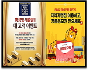 [산업경제뉴스 민경종 기자] 울산, 창원 등 경남권을 주된 영업기반으로 하는 BNK경남은행(은행장 최홍영)이 임인년 새해를 맞아 황금빛 새출발과 지역경제 활성화를 겨냥한 이벤트를 진행한다. 먼저 오는 3월 31일까지 ‘황금빛 새출발!! 대고객 이벤트’를 실시한다. 기간 중 새출발!! 정기예금에 가입한 고객에게 거래 실적에 따라 경품 추첨점수를 제공, 8명을 추첨해 골드바를 준다.(제세공과금 본인 부담) 추첨점수는 이번 정기예금 가입자에게 1점, 가입 합산금액 3000만원 이상 시 2점, 정기적금을 추가로 가입한 고객에게 3점, 최근 1년 이내 정기예금 미보유 고객에게 4점이 자동 지급된다.(1인 최대 10점까지) 1등 1명에게는 골드바 7돈, 2등 2명에게는 골드바 5돈, 3등 2명에게는 골드바 3돈, 4등 3명에게는 골드바 1돈을 제공한다. 이와는 별도로 이벤트 기간 중 새출발!! 정기예금에 가입하고 2022년 1월 1일부터 6월 30일 사이 창원시로 전입 신고한 고객을 대상으로 6명을 추첨해 골드바를 제공한다.(제세공과금 본인 부담) 1등 1명에게는 골드바 7돈, 2등 1명에게는 골드바 5돈, 3등 2명에게는 골드바 3돈, 4등 1명에게는 골드바 1돈을