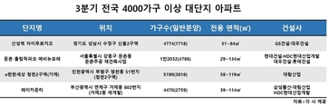 [산업경제뉴스 최기훈 기자] 3분기(7~9월) 전국에서 4000가구 이상의 대단지 아파트의 공급이 이어진다. 4000가구 이상의 대단지는 보통 몇 개 단지를 합한 것과 같은 규모를 선보이기 때문에 각종 생활 인프라와 편의 시설 등에서 편리함이 높아 입주민의 만족도가 높게 나타난다. 부동산114 및 관련 업계에 따르면 3분기 전국에서 예정된 4000가구 이상 대단지 아파트는 4개 단지, 총 2만 6466가구다. 서울·경기·인천 등 수도권에서는 2만 1996가구, 부산에서 4470가구의 공급이 예정돼 있다. 4000가구 이상 단지는 지역 내에서 상징성이 큰 ‘랜드마크’ 단지로 자리매김한다. 입주자 기준 최소 1만명 이상의 인구가 들어서다 보니 교통, 상업시설, 편의시설, 휴식시설 등이 집중되는 것은 물론 각종 생활 인프라 개선, 주거여건 개선 등이 일어나 지역을 대표하는 아파트로 자리 잡게 된다. 특히, 1000가구 이상 대단지 아파트는 ‘도시공원 및 녹지 등에 관한 법률’에 따라 개발 부지의 5% 또는 가구당 3㎡ 이상을 공원이나 녹지로 조성해야 되기 때문에 단지 내 공원 등 쾌적한 주거 환경을 보장 받을 수 있다. 이 같은 4000가구 넘는 매머드급 대단지는