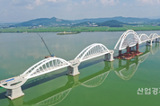[산업경제뉴스 강민구 기자] DL이앤씨는 서해선 복선전철 사업의 핵심공정으로 평가받는 국내 최대의 철도 아치교 건설작업을 성공적으로 마무리했다고 20일 밝혔다. 교량은 경기도 평택시 현덕면과 충청남도 아산시 영인면을 가로지르는 안성천 위에 건설되었다. 올해 2월부터 130일 동안 육상에서 제작된 아치는 지난 16일 아침 바지선에 옮겨졌다. 선적 후 총 11시간 30분의 작업시간을 거쳐 안성천 수면으로부터 23m 높이에 있는 교각에 안전하게 설치되었다. 이번 설치작업으로 DL이앤씨가 건설중인 서해선(홍성~송산) 복선전철 제 5공구 전 구간이 연결되었다. 아치교량은 총 5개의 아치 구조물로 구성되었다. 가장 큰 아치 양쪽으로 1,681톤의 아치 2개와 1,255톤의 아치 2개가 연결되는 모습이다. 이번에 설치한 아치는 길이 155m, 높이 46.5m, 무게는 2,726톤으로 가장 크다. 한강에 설치된 서강대교 아치교와 비슷한 규모다. DL이앤씨는 철도교량 시공에 국내 최초로 대선식 일괄 가설 공법을 활용했다. 이 공법은 교량 위 구조물을 육상에서 미리 조립한 후 바지선을 이용해 시공 위치로 옮겨와 교각 위에 설치하는 방법이다. 작업이 용이한 육상에서 구조물을 조