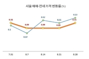 [산업경제뉴스] 정부가 고강도 주택규제 정책을 잇달아 내놨지만 주춤하던 아파트 가격이 다시 상승 조짐을 보이고 있다. 7월말 다소 하락했던 서울 아파트 가격이 지난주 다시 증가세로 돌아섰다. 부동산114에 따르면 서울 아파트 매매가격 변동률은 7월말 0.11% 였지만 8월에 들어서면서 0.09%로 하락했다. 그리고 8월 내내 0.09%를 유지해오다 지난주 0.11%로 상승하며 다시 오름세로 돌아서는 모습을 보였다. 매매가격 뿐만 아니라 전세가격도 더 높은 증가율을 보이며 상승세를 보였다. 서울 지역 전세가격 변동률은 7월말 0.1%에서 8월 초 0.07%로 하락했다. 하지만 8월 둘째주 0.12%로 증가했고 지난주에는 변동률이 0.13%까지 상승했다. 매매가격 보다 전세가격의 상승률이 더욱 높아 서민들의 어려움이 가중될 것이라는 목소리가 나온다. 서울 아파트 가격 상승세는 수도권 다른 지역보다 훨씬 높았다. 지난주 수도권 아파트가격 변동률을 보면, 서울의 매매가격은 0.11%가 상승한 반면, 신도시는 0.06%, 경기인천은 0.07%의 상승에 그쳤다. 전세가격도 서울 아파트의 전세가격은 0.13% 증가한 반면, 신도시는 0.08%, 경기인천은 0.09%에 그