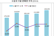 [산업경제뉴스 김소산 기자] 지난달 국내에서 팔린 수입승용차는지난해 같은 달 보다 0.5%가 늘어난2만2387대로 집계돼 전년수준의 판매량을 회복한 것으로 나타났다. 수입차 판매량은2017년 12월부터 불거진 BMW 화재사건 보도이후,지난 3월(2만6402대)을 정점으로 6개월 연속 하락추세를 이어갔다. 이후지난 9월 최저점인 1만7222대를 기점으로10월부터 지난달까지 두달 연속 판매량 2만대 이상에 올라서면서 지난해 같은달(2만2266대) 수준을 회복한 것으로 나타났다. 한국수입자동차협회는 5일 지난달 수입차 등록대수가 직전월 10월(2만813대)보다 7.5% 증가한 2만2387대, 11월까지 누적판매량은 24만255대로 집계됐다고 발표했다. 브랜드별로는 메르세데스 벤츠 7208대, BMW 2476대, 폭스바겐 1988대, 렉서스 1945대, 도요타 1928대로 1천대 이상 판매명단에 이름을 올렸고, 이어서 혼다 961대, 포드 854대, 볼보 731대, 크라이슬러 714대, 랜드로버 644대, 아우디 632대, 미니 592대로 500대 이상을 팔았고, 닛산 406대 등 7개 브랜드가 100대 이상을, 이어서 푸조, 롤스로이스, 람보르기니 순으로 팔려나갔