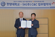 [산업경제뉴스 민경종 기자] SK㈜ C&C(대표 박성하)와 한양대(총장 김우승)가 손잡고 ‘행가래(幸加來)’를 통한 생활 속 사회적 가치(SV) 실천 모델 확산에 의기투합 했다. 이를 위해 SK㈜ C&C(대표 박성하)는 지난 5일, 서울 성동구 한양대 교학부총장실에서 한양대와 ‘행가래(幸加來)를 통한 생활 속 사회적 가치 확산 협력 협약’을 체결했다고 밝혔다. SK㈜ C&C 안석호 행복추진센터장, 한양대 김명직 교학부총장 등 관계자 10여명이 참석한 가운데 열린 이날 협약은 미래 한국의 주인공인 대학생들이 일상생활 속에서 ▲탄소 배출 저감 ▲자원 낭비 방지 ▲사회적 기부 ▲사회적 기업 활성화 등 사회적 가치 창출을 실천할 수 있는 디지털 플랫폼을 마련하고자 추진됐다. 이번 협약에 따라 SK㈜ C&C는 사회적 가치 창출 활동 지원 플랫폼 ‘행가래(幸加來)’의 주요 프로그램과 운영 노하우를 한양대와 공유하고 대학에 도입할 수 있도록 지원한다. ‘행가래(幸加來)’는 2019년 SK㈜ C&C 구성원들이 참여한 SV(Social Value, 사회적 가치) 작은 실천 아이디어 공모를 통해 개발된 블록체인 기반 플랫폼으로 ’행복(幸)을