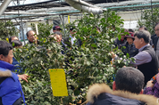 (미디어온) 고흥군은 지난 17일 농업기술센터에서 하나봉 재배농업인 50여명이 참석한 가운데 “최고품 하나봉 재배 기술교육”을 가졌다고 밝혔다. 하나봉 수확 후 본격적인 관리를 앞두고 진행된 이날 교육에서는 품종마다 다른 생리적 특성에 맞는 재배 환경 관리법 강의와 현장 연시회가 이루어졌다. 교육을 진행한 이중석 강사에 따르면, 시설하우스는 주야간 온도차가 15℃가 넘지 않도록 주간에는 환기를 통해 하우스 내 온도를 낮추어 고온으로 인해 새싹이 너무 일찍 나오지 않게 주의해야 한다. 강의 후 특화작목연구포장에서 이루어진 정지․전정 연시회에서는 3개의 주 가지를 적정 간격으로 배치하고 가지마다 새 가지와 잎을 틔워 빈 공간을 매우도록 하는 관리법에 대한 강의가 이루어졌다. 이중석 강사는 “현재 온난화로 인해 남쪽에서 재배되는 작물이 북쪽으로 확대된다고는 하나 작물은 극저기온의 영향을 받기 때문에 재배 한계 지역이 빠르게 확대된다고 보기는 어렵다”면서 “하나봉 재배에 있어서 고흥은 타 지역에 비해 높은 경쟁력을 가지고 있다”고 말했다. 군 농업기술센터 관계자는 “고흥지역은 높은 일조량과 유리한 토양조건을 갖추고 있으나, 재배기술에 따라 품질