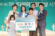 [산업경제뉴스 김명인 기자] 하나금융나눔재단은 지난 2일 하나금융그룹 명동사옥 대강당에서 '제11회 하나다문화가정대상' 시상식을 개최했다고 3일 밝혔다. 이 시상식은 다문화가정에 대한 관심 제고와 복지 증진을 통해 사회 통합 구현에 기여하고자 국내 최초로 지난 2009년부터 시작해 올해로 11회째를 맞는 전국 규모의 전통 있는 시상식으로 여성가족부가 후원한다. 수상자는 지난 4월에 공모를 통해 선발된 후보들에 대해 3개월 간의 전문가 심사 및 현지 실사를 거쳐 최종 선정됐다. 이 날 시상식에는 함영주 하나금융나눔재단 이사장, 진선미 여성가족부 장관, 우딴신 주한 미얀마 대사, 키란 사켜 주한네팔 대리대사, 응우엔 부 뚜 주한베트남 대사, 김인순 해밀학교 이사장 등이 참석해 총 12명의 개인과 3개의 단체를 시상하고 격려했다. 어려움을 극복하고 화목한 가정을 이룬 모범적인 결혼이주여성에게는 행복가정상과 희망가정상이, 다문화가정을 위해 노력한 개인 및 단체에는 행복도움상이 수여되었다. 영예의 대상인 여성가족부장관상은 네팔 출신 결혼이주여성으로 경남 함양에 거주 중인 결혼 13년차 주부 김예진 씨가 수상했다. 김씨는 결혼 초기 남편의 무뚝뚝함과 딸 아이의 장애(지