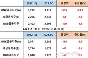[엔트로피타임즈 민경종 기자] 영·호남을 주된 영업기반으로 은행·증권·캐피탈 등의 종속회사를 거느린 지방은행금융지주 3사의 1분기 손익성적을 분석한 결과 BNK금융지주가 가장 저조한 장사를 한 것으로 나타났다. 각사가 공시한 1분기보고서에 의거해 먼저 종속기업 실적을 포함한 연결재무제표기준 올 1분기 합산 영업이익부터 살펴보면 총 7743억 원을 시현, 전년 동기 8451억 원보다 약 708억이 줄어 8.4% 가량 악화됐고, 합산 순이익 역시 6132억 원을 시현해 전년 동기 6403억 원 대비 272억 원이 줄어 약 4.2% 감소하는 등 3사 모두 부진한 성적표를 시장과 투자자에게 내밀었다. 이를 3사별로 세분화해 살펴보면 먼저 영업이익의 경우 부산경남권의 BNK금융지주가 3218억 원을 시현, 전년 동기 3752억 대비 약 535억 원이 줄어 –14.2%를 기록했고, 이어 대구·경북지역을 관할하는 DGB금융지주가 2293억 원의 영업이익을 올리는데 그쳐 전년 동기 2402억 보다 약 109억 원이 감소해 -4.6%를 시현 그 뒤를 이었다. 반면에 호남권을 관할하는 JB금융지주는 2232억 원의 영업이익을 올려 전년 동기 2296억 대비 약 64억 원이 감