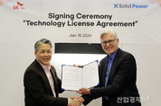 [엔트로피타임즈 강민구 기자] SK온이 미국 전고체 배터리 기업 솔리드파워(Solid Power)와 협력을 강화, 전고체 배터리 개발 속도를 높인다. 업계 최고 기술력을 보유한 양사 협력을 통해 ‘꿈의 배터리’로 불리는 전고체 배터리 개발에 한층 속도가 붙을 것으로 기대된다. SK온은 지난 주 미국 라스베이거스에서 종료된 세계 최대 가전·정보기술(IT) 전시회 'CES 2024'에서 솔리드파워와 기술 이전 협약을 체결했다고 17일 밝혔다. 지난 10일 (현지시간) 라스베이거스 컨벤션센터에서 열린 체결식에는 성민석 SK온 CCO(최고사업책임자)와 존 반 스코터 솔리드파워 CEO 등이 참석했다. SK온은 협약에 따라 솔리드파워가 보유한 전고체 배터리 셀 설계 및 파일럿 라인 공정 관련 기술 전부를 연구개발에 활용할 수 있게 된다. 솔리드파워는 SK온에 황화물계 고체전해질을 공급하고 안정성과 성능이 뛰어난 전고체배터리 개발을 돕는다. 이를 통해 SK온은 2025년까지 대전 배터리 연구원에 전고체 배터리 파일럿 라인을 구축할 계획이다. 파일럿 라인은 본격 양산에 앞선 시험생산 시설이다. SK온은 자사가 보유한 기술과 노하우에 솔리드파워의 황화물계 고체전해질 및 셀