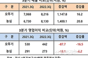 [엔트로피타임즈 문성희 기자] 지난 1분기와 2분기에 전례없는 호황을 맞았던 정유사들이 유가하락과 수요감소로 한 분기만에 영업실적이 급격히 감소했다. 정유사 가운데 가장 먼저 3분기 잠정실적을 발표한 S-OIL의 3분기 영업이익은 한 분기 전보다 70.3% 감소했고, 분기순이익은 적자로 돌아섰다. 3일 기업설명회가 예정돼있는 SK이노베이션과 비상장사인 GS칼텍스, 현대오일뱅크 등도 S-OIL과 비슷한 추세를 보일 것이라는 업계의 예상이다. S-OIL은 27일 3분기 잠정실적을 발표하고, 연결기준으로 매출 11조1,226억원, 영업이익 5,117억원, 분기순이익 96억원 손실을 기록했다고 밝혔다. 지난 2분기와 비교할 때는 실적이 크게 감소했지만, 작년 3분기와 비교하면 매출은 56.3% 증가했고, 영업이익은 6.9% 미미한 감소에 그쳤다. S-OIL은 "매출액은 글로벌 경기침체 우려로 인한 원유 가격 하락으로 전분기보다 소폭 감소했고, 영업이익은 국제유가 및 정제마진 하향 조정에도 불구하고 윤활 및 석유화학 부문의 실적 기여로 지난해 수준을 유지했다"고 설명했다. 국제유가는 지난해 3분기에 60~70달러 수준으로 올해 3분기 90~100달러 보다 낮았고, 정
