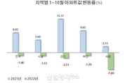 [엔트로피타임즈 문성희 기자] 최근 주택거래가 얼어붙고 가격이 폭락하면서 시장의 불안감이 커지고 있다. 하지만 시장 일각에서는 앞으로 집값이 더 떨어질 것이란 목소리도 만만치 않다. 최근의 가격하락세는, 그동안 오른 것과 비교하면 이제 시작 단계에 불과하다는 설명이다. 한국부동산원이 16일 발표한 '2022년 10월 주택동향'에 따르면, 올해 1월~10월 전국 아파트가격은 1.4% 하락했다. 하락률이 미미해서 사실상 지난해 말 수준을 유지하고 있는 모습이다. 반면, 지난해 1월~10월 전국 아파트가격은 8.93%나 상승했다. 신규아파트 청약률이 수백대 1을 기록하고, 소위 '영끌' 젊은 이들이 월 소득에 가까운 원리금 부담을 지면서까지 주택구입에 나선 배경이다. 특히, 영끌족이 주로 매수에 나섰던, 경기지역은 지난해 1월~10월 무려 15.17%나 상승했었다. 상대적으로 가격이 낮아 뒤늦게 매수에 나선 서민들이 서울 인근으로 몰렸기 때문이라는 분석이다. 하지만 경기지역의 올해 변동률은 -2.53%다. 경기지역도 지난해 상승폭에 비하면 올해의 하락률은 미미하다는 평가다. 이렇게 지난해 상승세에 비해 올해 하락세가 절대적으로 작은 데도, 최근 시장이 얼어붙는 이