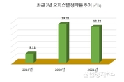 [엔트로피타임즈 문성희 기자] 2014년 이후 8년 동안 아파트 값이 천정부지로 치솟으면서, 높아진 아파트 값을 감당해내기 어려운 수요자들이 최근 오피스텔과 연립주택 등 탈(脫) 아파트 경향을 보이고 있다. 특히 오피스텔에 대한 수요자들의 관심이 커지고 있는데, 오피스텔 분양에 몰린 청약 경쟁률을 예로 살펴보면 2년 전인 2019년과 2020년·2021년이 완전히 다른 양상을 보이고 있다. 부동산 전문 리서치 업체 리얼투데이가 올해 전국에서 분양한 오피스텔의 청약 경쟁률을 조사한 결과, 2만1594실 모집에 26만3969명이 접수하며 12.2대 1의 경쟁률을 기록한 것으로 나타났다. 이는 2019년 3.1대 1(1만2697실 모집, 3만9481건 접수)보다 4배나 높은 경쟁률이다. 오피스텔 쳥약경쟁률은 지난해에도 평균 13.2대 1(2만7,761실 모집, 36만6,743명 접수)을 기록했다. 작년과 올해에 오피스텔로 수요자들이 몰리고 있는 현상으로 해석된다. 더욱이 최근 정부가 오피스텔 바닥 난방 규제 완화를 발표하면서, 시장에서는 오피스텔에 대한 선호도가 더욱 높아질 것으로 예상하면서 올 연말 쯤에는 지난해 기록을 뛰어넘을 것이라는 목소리에 무게가 실린다.