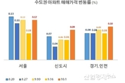 [엔트로피타임즈 문성희 기자] 정부의 잇따른 공급확대정책에도 좀처럼 꺾이지 않던 아파트값 상승세가 추석 명절 기간 동안은 매매·전세 모두 주춤하는 모습을 보였다. 시장에서는 명절의 영향이라며, 명절 후에는 가을 이사철을 맞아 다시 상승세로 돌아 설 것으로 예상하고 있지만, 일각에서는 정부의 공급확대정책이 조금씩 효과를 나타내고 있다는 목소리도 나온다. 서울 아파트값의 주간상승률은, 지난 4월 지방자치단체장 선거 이후 0.10~0.13%로 높이 치달았지만 추석을 앞둔 9월 16일 조사에서 0.08% 로 축소된 것으로 조사됐다. 5개월만에 0.10% 아래로 하락했다. 하지만 시장에서는 한 주 전 9월 10일 조사에서도 0.12%를 기록하며 높은 상승률을 보였기 때문에, 명절이 끝나면 다시 0.10%를 넘어설 것이라는 분석이 나오고 있다. 전세 가격 상승률도 지난 6월 이후 줄곧 0.08%~0.11%의 상승률을 보였지만, 추석 전 주에는 0.05%까지 떨어지며 4월 수준을 보였다. 하지만 전세가격은 매매가격과 달리 8월 중순 이후 꾸준히 하락세를 보이고 있어, 명절의 영향때문만은 아니라는 분석도 나온다. 즉, 추석이 지나고도 계속 0.10% 아래의 상승률을 보일