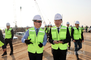 [엔트로피타임즈 최기훈 기자] 대우건설(대표이사 백정완)은 지난 14일 조승환 해양수산부 장관과 백정완 대우건설 사장이 이라크 알포(Al Faw) 항만 건설현장을 방문하고 알포 항만 사업에 아국기업의 진출 확대방안과 K-컨소시엄(대우건설·부산항만공사·SM상선경인터미널)의 항만 운영사업 추진 방안에 대해 논의 했다고 밝혔다. K-컨소시엄은 작년 7월 이라크측의 요청을 받아 대한민국의 대형 항만 건설과 운영 노하우를 이라크에 전수할 목적으로 민관 합동으로 공동 참여 협약을 체결하였다. 대우건설은 현재 시공중인 알포항 하부 및 연관 인프라 공사와 더불어 첫 터미널 5선석 건설에 참여하여 알포항이 물류 허브항으로 성장하는데 기여하길 희망하고 있다. 조승환 장관과 백정완 사장은 이튿날인 지난 15일 바그다드로 이동해 라자크 알 사다위(Razak Muhaibes El Saadawi) 교통부 장관, 자바르 알하이다리(Mr. Jabbar Thajil Al-Haidari) 국방부 차관, 하미드 나임 쿠다이르 압둘라 알가지(Hamid Naim Khudair Abdullah Al-Ghazi) 이라크 내각 사무총장을 예방하고 한국 기업의 이라크 재건시장 인프라 사업 등에 참여가