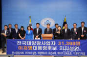 [산업경제뉴스 손영남 기자] 더불어민주당‘진짜 대한민국’ 선거대책위원회 이재명 후보 직속 기후위기대응위원회(위원장 위성곤·위진, 이하 ‘기후위’)는 27일, 전국태양광발전사업자 3만 1,398명이 이재명 후보 지지를 선언한 기자회견에 참석했다고 밝혔다. 이날 기자회견에는 대한태양광발전사업자협회 곽영주 회장과 전국태양광발전협회 김명룡 회장을 비롯한 관계자들이 참석해 “기후위기에 실질적으로 대응하고 재생에너지 확대를 추진할 수 있는 후보는 이재명”이라며 “전국태양광발전사업자 3만 1,398명은 이재명 후보를 지지한다.”고 공식 선언했다. 기자회견 현장에는 기후위 위성곤·위진 위원장을 비롯해 김성환 진짜대한민국 선대위 정책본부장, 염태영 기후위 수석부위원장 등 함께 자리해 태양광발전사업자들의 결단과 연대에 감사의 뜻을 전했다. 위성곤 위원장은 “태양광 산업은 탄소중립 사회로 나아가는 데 있어 가장 선도적인 영역 중 하나”라며, “기후위기를 극복하고 지속가능한 미래를 열기 위한 오늘의 지지선언은 매우 뜻깊은 움직임”이라고 밝혔다. 이어 “지난 3년간 어려움 속에서도 에너지전환을 실천해 오신 전국의 태양광 발전사업자 여러분께 깊은 경의와 감사를 드린다”며, “현장의