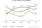 [엔트로피타임즈 문성희 기자] 짧은 장마에 이은 폭염이 전국을 뒤덮으면서 아파트 매매시장도 움찔하는 모습이다. 지난 4월 서울시장 선거 이후 폭등세를 보이던 서울 아파트값 상승률이 지난주에 4월 수준으로 후퇴했고, 신도시나 경기인천 지역 아파트값도 약세와 보합세를 보였다. 매주 수도권 아파트값을 조사하는 부동산114에 따르면, 강남 재건축 아파트가 주도했던 서울 아파트 매매가격의 주간 변동률은 7월 둘째주 0.12%까지 치솟았지만 지난주 0.09%로 한 주만에 뚝 떨어졌다. 이러한 상승률은 지난 4월 서울시장 선거 때의 수준이다. 그동안 상승세를 주도하던 재건축 아파트는 지난주에 0.07% 상승률을 보였다. 신도시 아파트 매매가격도 한 주 전 수준인 0.05%를 그대로 유지하며 보합세를 보였고, 경기인천 지역의 아파트값은 한 주 전 0.09%에서 0.01%포인트 떨어진 0.08%로 조사됐다. 시장에서는 이러한 상승률 후퇴가 지난주 부터 시작된 폭염과 휴가철 때문으로 분석하고 있다. 또 그동안 강남재건축 아파트 가격이 너무 올라 수요자들이 가격부담을 느낀 것도 한 원인이라는 분석도 나온다. 지난주에는 서울 25개구 아파트 가운데 16개구의 아파트값 상승률이 축