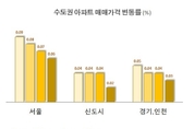 [산업경제뉴스 문성희 기자] 정부가 집값을 잡겠다며 추진한 금융·조세 규제가 효과를 내고 있다는 목소리가 나온다. 지난 10월 대출한도축소, 금리인상, 대출조건강화를 시행하자, 지난 7~8년 동안 오르기만 했던 아파트값이 상승세를 줄이면서 박스권을 형성하고 있었는데, 최근 크게 오른 종부세가 고지되면서 상승률이 급속하게 감소하고 있기 때문이다. 하지만 이런 가운데도 대선후보들이 여야를 막론하고 민간을 통한 공급확대 정책을 제시하면서 재건축·재개발 대상 아파트들은 여전히 오름세가 커지는 모습을 보이고 있다. 매주 수도권 아파트가격을 조사하고 있는 부동산114의 수도권 아파트가격 데이터를 살펴보면, 최근 한 달 동안 서울 아파트의 주간상승률은 0.09%에서 0.06%로 감소했다. 신도시도 0.04%에서 0.02%로 감소했고 경기인천지역도 0.05%에서 0.03%로 감소하면서 신도시와 경기인천지역은 사실상 상승세가 거의 멈춘 모습이다. 이러한 추세는 지난 10월부터 시작된 것으로 분석된다. 지난 10월 첫째주만해도 서울의 주간상승률은 0.12%, 신도시는 0.09%, 경기인천은 0.10%로 지난주 상승률의 2~4배에 달하는 등 높은 상승세를 보이고 있었다. 10월