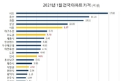 [산업경제뉴스 문성희 기자] 전국 아파트의 평균 가격이 4억원을 넘어섰다. 한국부동산원의 주택통계조사에 따르면 지난해 12월 3억 9600만원으로 4억원 코밑까지 접근했던 전국 아파트 평균 가격이 올해 1월 드디어 4억 100만원으로 집계되면서 4억원 시대가 열렸다. 아파트 가격이 가장 높은 곳은 서울 서초구로 17억 8300만원으로 조사됐다. 전국 평균의 4배가 넘는 가격이다. 서울지역 평균가격도 8억 9700만원으로 나타나 서초구는 서울평균에도 두 배 가까운 가격을 형성하고 있다. 서울 강남구도 17억 5700만원으로 조사됐다. 강남 3구로 일컬어지는 송파구는 12억 8000만원으로 나타나 서초, 강남구와 차이를 보였다. 과천시가 13억 1100만원으로 조사돼 송파구보다 가격이 높은 것으로 조사됐다. 수도권 아파트의 평균가격은 5억 7000만원인 반면 지방 아파트 가격은 2억 4200만원으로 나타나 수도권과 지방 아파트 가격도 두 배 넘게 벌어졌다. 지방 아파트 가운데는 대구시 수성구가 6억 100만원으로 부산 해운대구 4억 8300만원보다 비싼 것으로 조사됐다. 대구 수성구는 지난해 2월 이미 5억원을 넘겼으며, 부산 해운대구는 1년 전에 3억 8900