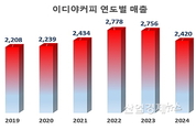 [엔트로피타임즈 민경종 기자] 국내 1세대 토종 커피브랜드 이디야가 여름시즌과 방학특수를 겨냥해 선보인 프로모션 2종이 관심을 끌고 있다. 6월 한 달 동안 자사 멤버십 앱 ‘이디야멤버스’를 통해 다양한 고객 맞춤형 혜택을 선보임과 동시에 여름 방학 특수를 겨냥, 한국민속촌과 손잡고 다채로운 프로모션을 내논 것인데, 과연 이같은 일련의 승부수가 최근 2년 연속 매출 감소세가 이어지고 있는 동사의 외형을 재차 성장세로 되돌릴 기폭제가 될지 업계의 관심이 쏠리고 있다. 그렇다면 동사의 최근 6년간 매출액은 어떠한 흐름을 보였을까? 감사보고서에 의거해 살펴보면, 2019년부터 2022년까지 4년 동안은 창사 최대 매출액을 해마다 갱신하며 승승장구했다. 2019년 2208억, 2020년 2239억, 2021년 2434억, 2022년 2778억 원을 기록한 것인데, 하지만 이듬해인 2023년에는 2756억의 매출로 전년대비 약 22억 원 가량 줄더니, 지난해는 2420억 원의 매출을 시현하며, 무려 336억이 줄어 12.2%나 역 성장해 우려감을 키우고 있다. 이는 우크라이나와 러시아 간 전쟁으로 촉발된 곡물 등 원자재가격 상승의 여파로 인한 고물가 현상의 지속과 더