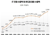 [엔트로피타임즈 문성희 기자] 2000년 이후 IT강국으로 자타가 공인했던 한국의 IT산업이 부진의 늪에서 빠져나오지 못하고 있다. 특히 그동안 반도체 호황에 가려져 보이지 않았던 핸드폰, 컴퓨터, 디스플레이 등 IT품목의 부진이 최근 반도체 실적 마저 급감하면서 고스란히 드러나고 있다. 업계 일각에서는 "반도체의 착시현상이 걷히면서 한국 IT산업의 민낯이 드러나고 있다"라는 평가가 나오고 있다. IT산업이 우리 수출에서 차지하는 비중은 1996년 32%, 2005년 37%, 2018년 36%으로 3분의 1 수준을 유지하고 있다. 수출액도 1996년 412억 달러에서 2018년 2204억 달러로 매년 7.9%의 성장률을 보였다. 특히 최근 2년동안에는 연평균 16.5%의 성장세를 보이며 우리 수출의 버팀목으로 성장했다. 하지만 이러한 성장세의 이면을 자세히 들여다 보면 오직 반도체 한 품목만의 성장이었던 것을 발견할 수 있다. 실제로 한국경제연구원(이하 한경연)이 지난 20년 IT산업 수출액을 품목별로 조사해본 결과 반도체를 제외하면 핸드폰, 컴퓨터, 디스플레이 등 한 때 한국 IT산업을 이끌던 품목들이 2010년 이전 수준으로 돌아 간 것으로 조사됐다. 반