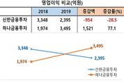[산업경제뉴스 민경종 기자] 신한금융지주의 증권 자회사인 신한금융투자의 지난해 영업실적이 외형과 손익 증가율 모두 라이벌 하나금융지주의 증권 계열사인 하나금융투자에게 완패를 당한 것으로 나타났다. 각사 사업보고서에 따르면 먼저 연결매출(영업수익)의 경우 신한금융투자가 2018년 대비 16.3% 신장한 6조1399억 원을 시현한 반면, 하나금융투자는 전년 대비 약 44.4% 증가한 5조4515억 원의 매출을 기록, 외형 증가율면에서 신한금융투자 보다 약 2.7배나 앞섰다. 아직까지 절대 수치는 신한금융투자가 약 6884억 가량 더 많지만, 2018년도 격차 1조5053억과 비교하면 상당히 축소된 수치다. 이러한 추세가 올해도 이어진다면 하나금융투자에게 외형이 역전당하는 수모(?)를 당할 가능성도 배제할 수 없는 상황까지 내몰린 상태다. 영업이익 증가율 ‘신한 –28.5% vs 하나 77.1%’로 신한 완패...절대 규모까지 뒤져 특히 손익의 경우 두 회사 간 희비가 극명하게 갈렸다. 신한금융투자는 영업이익 증가율은 물론, 그 절대 수치마저 하나금융투자에게 역전 당하는 수모를 당한 것. 신한금융투자의 지난해 영업이익은 2395억으로 전년도 3348억 원보다 28