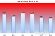 [산업경제뉴스 문성희 기자] 최근 고용이 줄고 일자리가 없어진다는 우려가 커지고 있지만, 30대그룹의 종업원수는 꾸준히 증가하고 있는 것으로 나타났다. 특히 2017년과 2018년 종업원수 증가폭은 이전보다 더 컸다. 한국경제연구원(이하 한경연)이 공정거래위원회의 기업집단포털 데이터를 분석한 결과, 자산 순위 상위 30대 그룹의 2018년 말 종업원 수는 135만4731명으로 조사됐다. 30대그룹의 종업원수는 지난 5년 동안 미미하지만 꾸준히 증가하는 추세를 보였다. 5년 전인 2014년에는 128만명이었지만 다음해에는 1.3% 증가한 129만명이었으며 그 후로도 1% 내외의 증가폭을 보이며 계속 증가했다. 특히 2018년에는 직전 년도보다 2.3% 증가하면서 최근 5년 래 가장 큰 폭의 증가율을 보였다. 2016년 0.9%를 저점으로 2017년과 2018년 증가폭이 커지고 있는 추세다. ■ 제조업이 절반 차지...임대·시설관리업, 금융보험업 등 크게 늘어 30대그룹의 종업원 수가 증가하는 추세를 업종별로 살펴보면, 시설관리·임대업과 금융보험업의 종업원수가 최근 5년 사이 가장 많이 늘어난 것으로 조사됐다. 시설관리·임대업은 5년전인 2014년 5만854명이