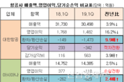 [산업경제뉴스 김소산 기자] 국내 대표 항공사인 대한항공과 아시아나항공의 지난 1분기 당기순익이 적자로 마감되면서 미래 수익성에 경고등이 켜졌다. 지난 15일 대한항공은 1분기 매출액 3조498억 원, 영업이익 1482억 원, 당기순손실 342억 원을, 아시아나는 같은 기간 매출액 1조4385억 원, 영업 손실 118억 원과 당기순손실 843억 원을 기록했다고 발표했다. 이들 두 항공사의 실적을 지난해 같은 기간과 비교해 보면, 매출은 각 각 대한항공이 3.9%, 아시아나가 2.5% 줄었고, 영업이익은 대한항공이 16.2% 줄어든 1482억 원을 기록했으나, 아시아나는 지난해 377억 원 에서 올해 118억 원의 영업 손실로 전환했다. 당기순익에서는 대한항공이 지난해 1분기 233억 원의 흑자에서 올해 1분기는 –342억 원으로 적자로 돌아섰다. 또한 아시아나는 같은 기간 –25억 원에서 –843억 원으로 적자폭을 키워갔다. 지난해 상반기까지 만해도 대한항공의 영업이익이 직 전년 대비 25.2% 줄여갈 때 국내 2위 규모인 아시아나는 같은 기간 804억 원의 영업이익을 올리며 33.1% 늘려갔다. 뿐만 아니라, 아시아나는 지난해 상반기 기준 매출성장률에서도