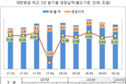 [산업경제뉴스 김소산 기자] 대한항공이 지난 1분기 손익이 적자를 내면서 2분기 연속 적자를 이어갔다. 대한항공은 지난 15일, 올 해 1분기 실적을 발표하면서 매출은 전년동기 대비 1.1% 증가한 3조498억 원을 기록, 이는 1분기 기준 역대 최대실적이라고 밝혔다. 하지만, 이 같은 외형성장에도 불구 영업이익은 전년 동기 대비 16.2% 줄어든 1428억 원, 당기순익은 342억 원의 적자전환으로 마감했다. 대한항공은 이에 대해 “매출은 여객부문에서 델타항공과의 조인트벤처 효과로 미주노선 탑승률이 3% 증가했다”고 설명했다. 지난해 4분기 959억 원의 결손에 이은 지난 1분기 연속된 적자에 대해서는 달러강세에 따른 환율상승이 외화환산손실을 발생시킨 원인으로 지목했다. 달러강세인 경우 환율 상승으로 손실이 나고, 반대로 달러약세이면 환율하락으로 이익이 난다는 설명이다. ■ 달러 약세(환율하락)였던 전년 1분기에도 적자 만들어 대한항공의 1분기 기준 당기순익을 2년 전과 비교해 보면, 2017년은 5631억 원의 순익을 올렸으나 지난해 와서는 233억 원으로 순익이 96%나 축소됐고 이후, 올해 1분기는 아예 342억 원 의 적자를 만들었다. 하지만, 업계