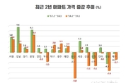[산업경제뉴스 문성희 기자] 문재인 정부가 지난 2년 동안 15개의 부동산 정책을 쏟아내면서 드디어 올해부터 아파트 가격이 하락세로 돌아섰다. 하지만 전국 평균은 하락세로 돌아섰음에도 불구하고 서울·분당과 지방 대도시는 여전히 높은 상승률을 기록하고 있다. 반면, 정부의 부동산 정책 타깃이 아니었던 지방 소도시와 농어촌의 아파트는 가격이 급락하면서, 미분양, 미입주, 깡통전세와 주택대출 상환압력 증가 등 불안감이 커지고 있다. 지역별 아파트 가격 차이가 10배가 넘는 가운데 정부의 정책이 가격 약세지역에 더 큰 영향을 끼치면서 정부의 부동산 정책이 엉뚱한 방향으로 흘러가고 있다는 지적이 나오고 있다. 또 다른 한편에서는 지금의 이러한 불균형 현상이 지난 3~4년 시장에 지나치게 많은 아파트가 공급되면서 강남과 서울로 돈이 몰렸기때문이라면서 정부의 정책이 없었으면 지역간 차이와 지방 도시의 어려움은 더 커졌을 것이라는 반론도 만만치 않다. ■ 전국 평균 아파트 가격 하락했지만, 서울·분당 상승률 전국 최고 한국감정원의 주택가격조사 통계를 분석해 본 결과 2018년 2월부터 2019년 1월까지 최근 1년 간의 전국 아파트 가격은 0.5% 하락한 것으로 나타났다.