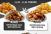 [엔트로피타임즈 민혜정 기자] 치킨업계 외형 1위 bhc치킨이 자사 앱 이용 고객 대상, 11월 한 달간 인기 치킨 메뉴 4종에 대해 2,000원 할인하는 ‘흑백치킨대전’ 이벤트를 진행한다. bhc 전언에 따르면 이는 최근 유명 OTT 방송에서 인기리에 종영된 프로그램의 서바이벌 콘셉트를 반영해 젊은 고객층에게 재미있게 다가가기 위함이다. 재야의 숨은 고수 메뉴로 ‘단짠(단맛+짠맛)’의 밸런스가 뛰어난 ‘맛초킹’과 특히, 올해 들어 인기가 급상승 중인 매운맛의 ‘핫후라이드’를, 상대편 인기 스타 메뉴로 소스의 맛이 깊고 깔끔한 ‘골드킹’과 바삭함의 영원한 끝판왕 ‘후라이드’를 선정했다. 이번 이벤트는 ‘맛초킹’을 시작으로 ‘후라이드’, ‘핫후라이드’, ‘골드킹’ 순의 릴레이 방식으로 11월 한 달간 bhc 자사 앱에서 해당 메뉴를 배달 또는 포장 주문 시 2,000원을 자동으로 할인해 준다. 단, E-교환권이나 타 할인쿠폰과 중복 할인 적용은 안되며, 주문은 낮 12시부터 밤 11시 30분까지 가능하나 일부 매장의 경우 영업시간 사정에 따라 다소 주문이 제한될 수 있다. bhc 관계자는 “자사 앱을 이용할 경우 가맹점에서 수수료를 추가로 부담하지 않아 가맹점