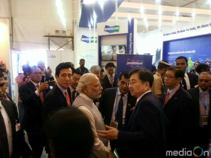 (미디어온) 우리 제조 기업의 인도 진출길이 한층 넓어졌다. KOTRA는 지난 13일(토) 인도 뭄바이의 ‘메이크 인 인디아(Make In India) 위크’ 전시회 한국관을 찾은 나렌드라 모디 인도 총리가 한국 기업에 대한 아낌없는 지원을 약속했다고 밝혔다.