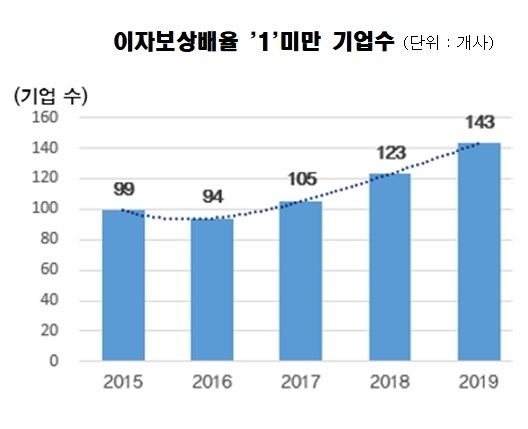 이렇게 기업들의 수익성이 악화되면서, 작년 상장사 5곳 중 1곳은 영업이익으로 이자비용도 내지 못했으며, 이러한 상황이 3년 연속 지속된 한계기업 수는 2017년 이후 2배가 늘어난 곳으로 조사됐다.