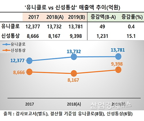 2019 회계연도 매출, ‘유니클로 0.4% 성장 vs 신성통상 15.1%’