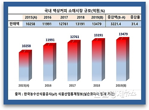 [산업경제뉴스 민경종 기자] 지난 2015년이후 지난해까지 4년간 연 평균 7.9%씩 성장하고 있는 ‘액상커피’ 시장에서 우위를 점하기 위한 식품업계의 한판승부가 뜨겁게 펼쳐지고 있다.