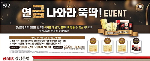 이에 앞서 지난 22일에는 ‘BNK경남은행 함께100년 연금 패키지’ 상품 출시를 기념해 오는 10월 말까지 ‘연금(金) 나와라 뚝딱 이벤트’도 선보였다.