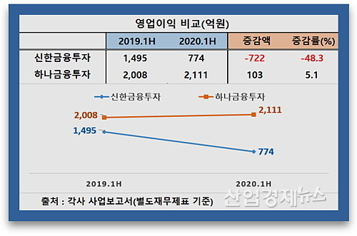 영업이익 증가율, ‘하나 5.1% vs 신한 –48.3%’...하나금융투자 완승
