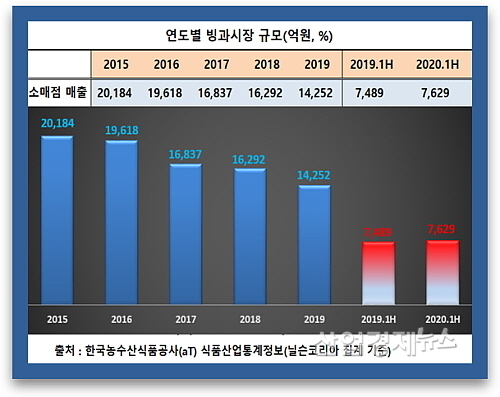 지난해 빙과시장 규모는 1조4252억 원으로 2013년 이후 6년 사이 최저치로 추락한 바 있다.  더욱이 2015년 2조184억을 시현, 정점을 찍은 후 매년 규모가 줄어 29.4%나 쪼그라들어 4년 동안 연평균 7.3%씩 축소돼 왔던 터여서 올 상반기의 증가세에 업계의 이목이 쏠리고 있다.