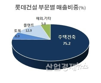 롯데건설의 올해 3분기까지 매출액을 각 사업부문별로 살펴보면, 주택사업이 주 영업인 주택건축부분이 전체 매출의 75.2%를 차지하고 있다.