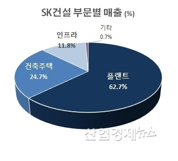 SK건설은 주택과 플랜트, 인프라 등 각 사업부문이 비교적 고르게 분포돼있어 다른 건설사들의 부러움을 사고 있다.