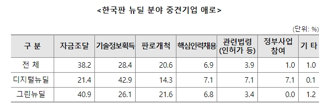 실제로 조사결과 조사대상 중견기업의 72.6%가, 5년 내 한국판 뉴딜 품목이 자사 제품의 핵심 될 것으로 전망하고 있었다.